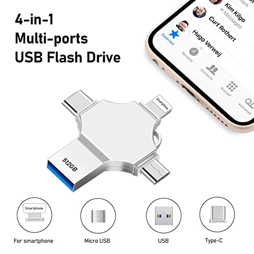 - Chiavetta USB 4 in 1: Chiavetta usb multifunzionale 4 in 1 (smartphone usb+micro usb+type c+computer usb) compatibile con la maggior parte dei dispositivi. Con una sola pendrive, puoi trasferire liberamente foto e video tra più dispositivi!