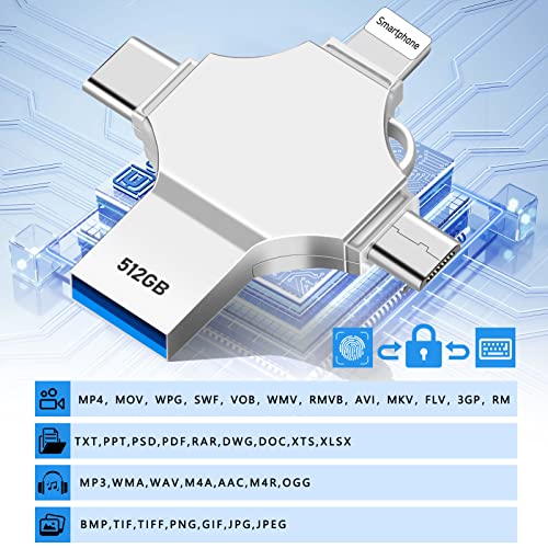 - Spazio di archiviazione aggiuntivo: Lo spazio di archiviazione da 512gb è sufficiente per soddisfare le esigenze di archiviazione nella vita quotidiana, nel lavoro e nello studio. Trasferisci file tra più dispositivi, libera rapidamente spazio di archiviazione sul dispositivo e proteggilo dal blocco. Supporta la trasmissione di vari tipi di dati come musica, video, film, immagini, giochi, ecc.