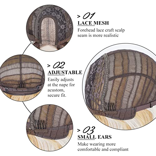 - 【Dimensione del cappuccio regolabile】: circonferenza della testa 22,5 pollici con due cinghie elastiche di regolazione all'interno (4 pollici di estensione) può essere collegata a una posizione fissa per adattarsi a diverse dimensioni della testa. Questa parrucca da donna include 2 clip extra per il fissaggio, assicurando che la parrucca rimanga sempre in posizione