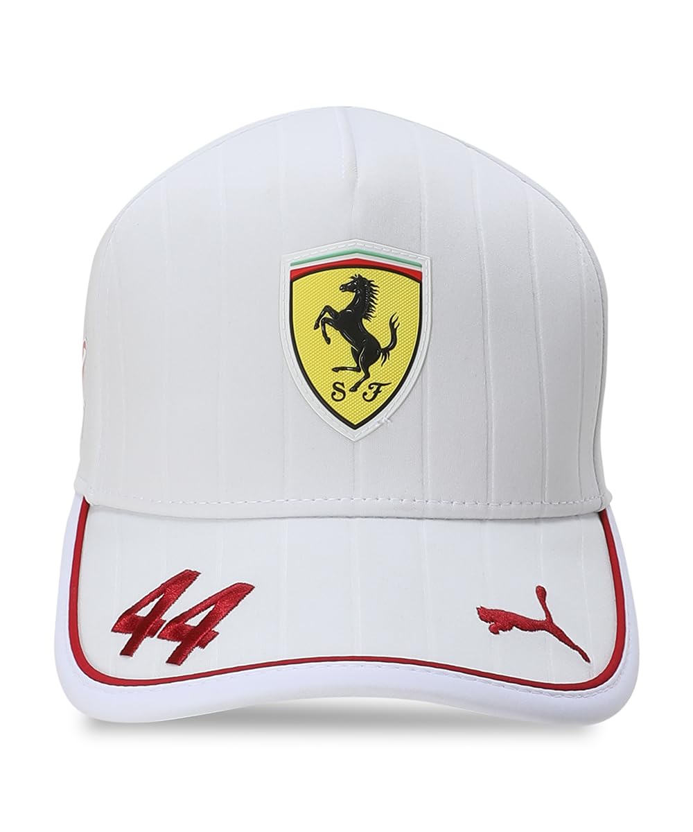 Il cappellino ufficiale del pilota della Scuderia Ferrari Lewis Hamilton 2025 di PUMA, riconoscibile perché indossato da Hamilton nella sua prima stagione di Formula 1 2025 con la scuderia Ferrari. Il cappellino da pilota di Hamilton è disponibile nel colore rosso Ferrari 2025, con il suo numero 44 sulla visiera e tutti i marchi ufficiali Ferrari e PUMA.